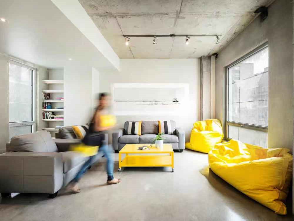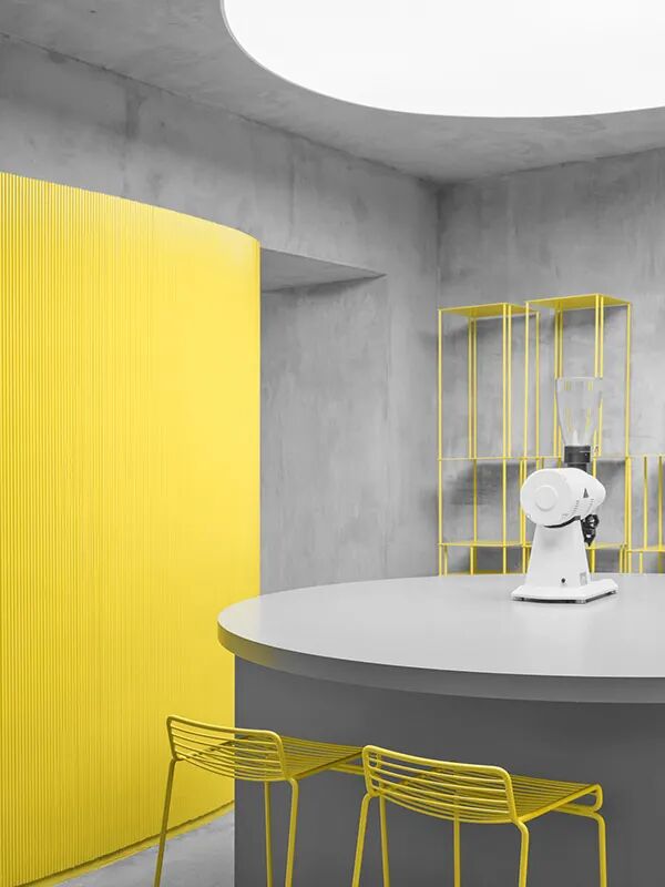 灰色是一個(gè)中性的顏色,它有堅(jiān)定可靠的優(yōu)雅,溫和而不鋒利。就像這個(gè)以混凝土的灰色作為整個(gè)空間的主調(diào),加以明亮黃的點(diǎn)綴,就能讓空間冷靜里帶著跳躍的熱情,矛盾卻很好地平衡了空間的氛圍。